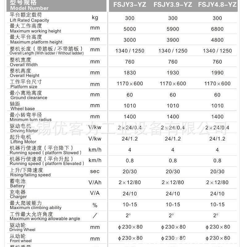 为您提供商品高空作业平台3米3.9米4.8米 优客力全电动液压转向载人升降平台车的详细介绍,