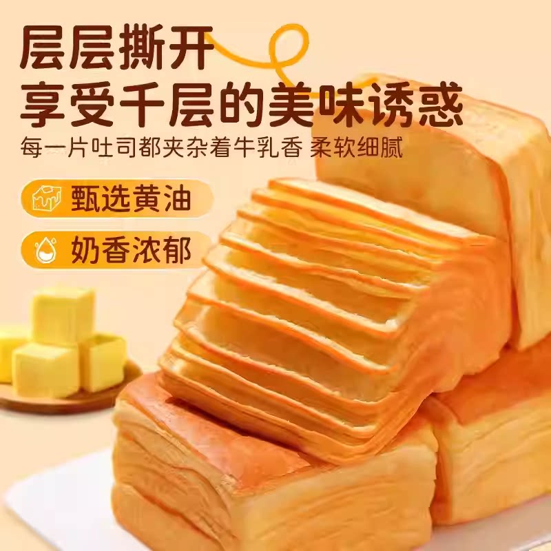 水牛乳千层吐司手撕早餐奶香浓郁软面包代餐一整箱 优惠30