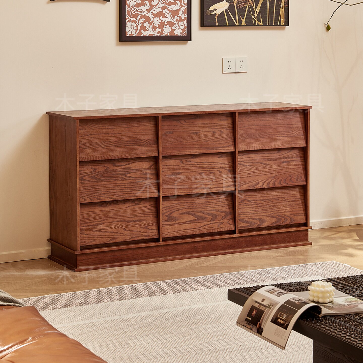 中古风九斗柜客厅大小户型收纳柜储物柜复古风储藏餐边柜沙发边柜由