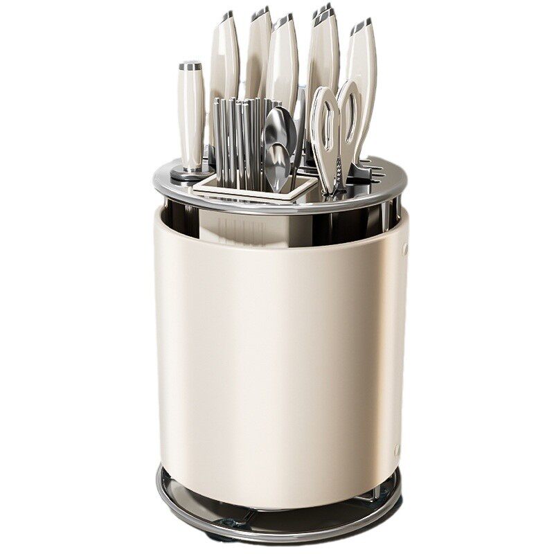 精选货源加厚不锈钢厨房旋转刀架台面置物架刀具筷子筒一体多功能