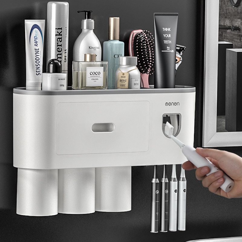 免打孔卫生间牙具座牙膏收纳浴室 牙刷牙杯壁挂置物架电动牙刷套装