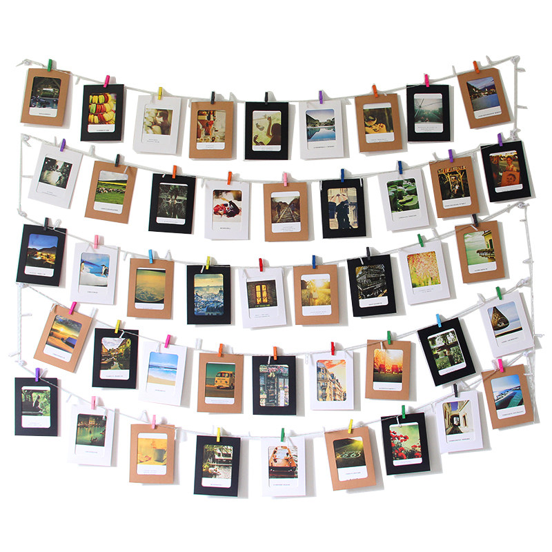 饰相框组合挂绳免打孔麻绳夹子无痕钉打印洗照片挂墙 创意照片墙装