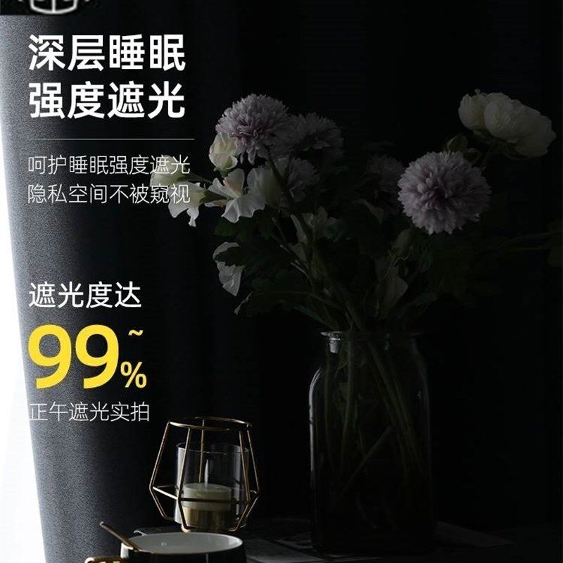 窗帘布提花加厚遮光遮阳卧室租房公寓自建房挂钩打孔定制成品 新款
