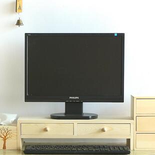 办公桌抽屉式 收纳盒置物架桌面电脑液晶显示器底座实木增高架 包邮由