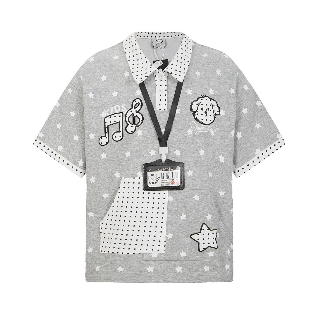 POLO领T恤男女宽松情侣上衣 文文不乖原创波点小狗挂牌假两件短袖