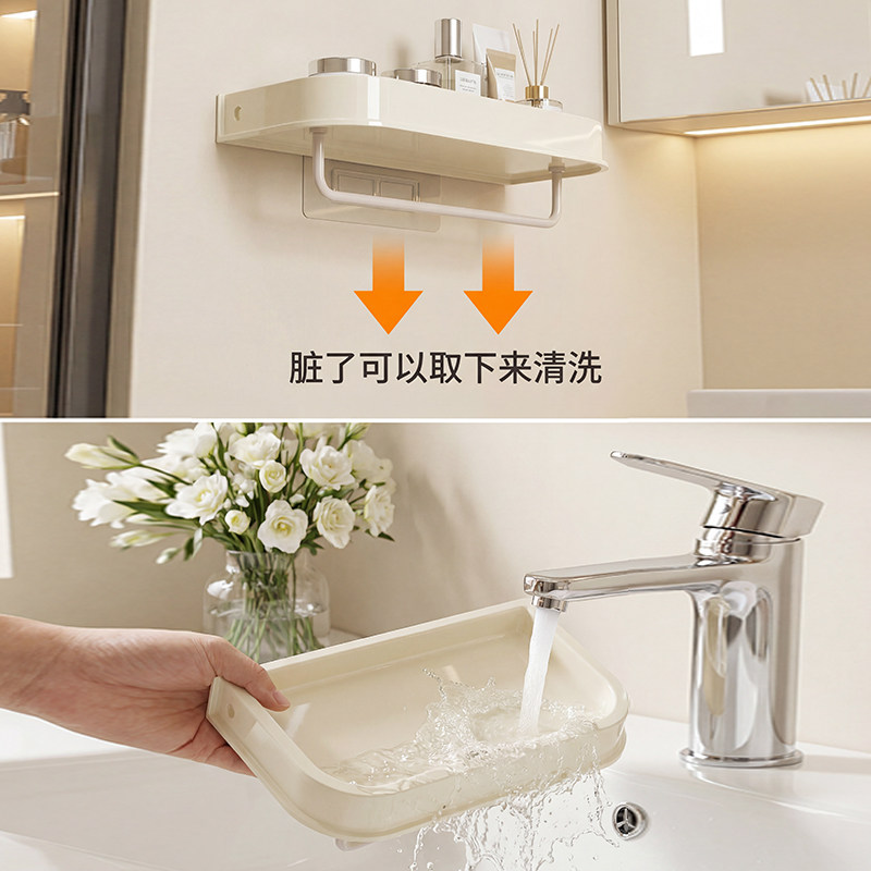 化妆品毛巾牙刷多功能收纳架 卫生间置物架厕所洗手间免打孔壁挂式由