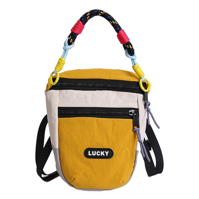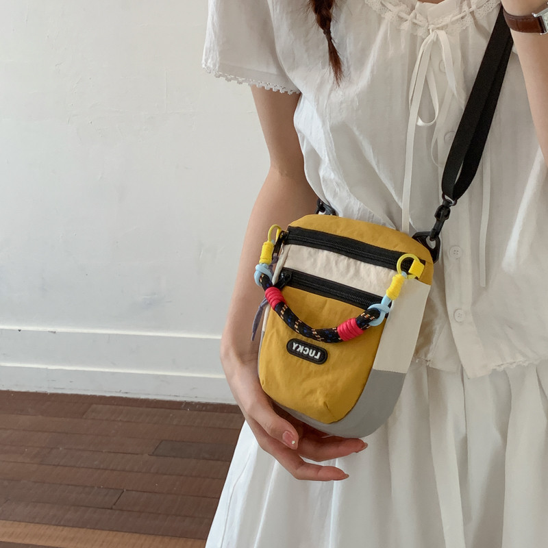 日系轻便小包包女斜挎包撞色可爱彩绳手拎手机包休闲春游迷你小包