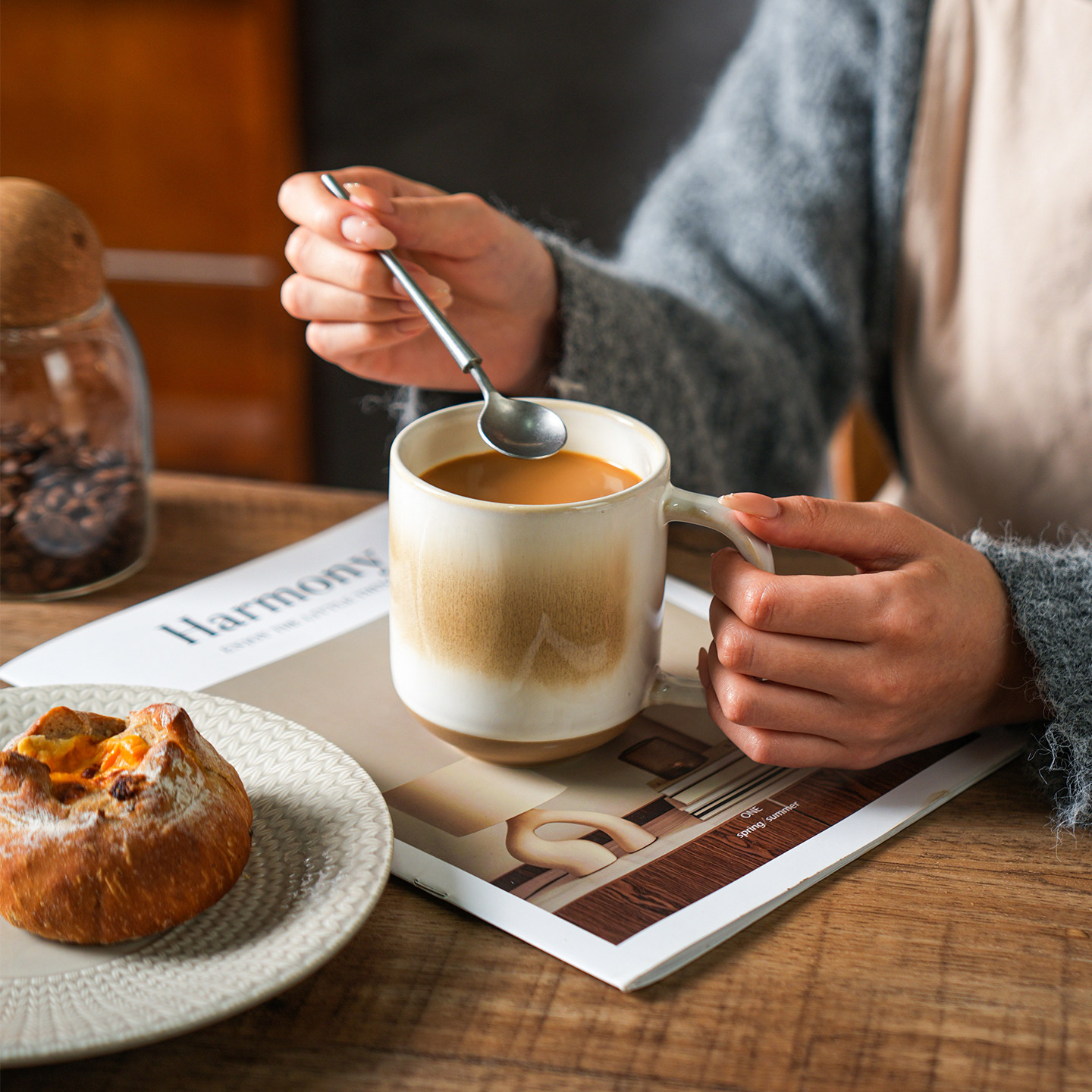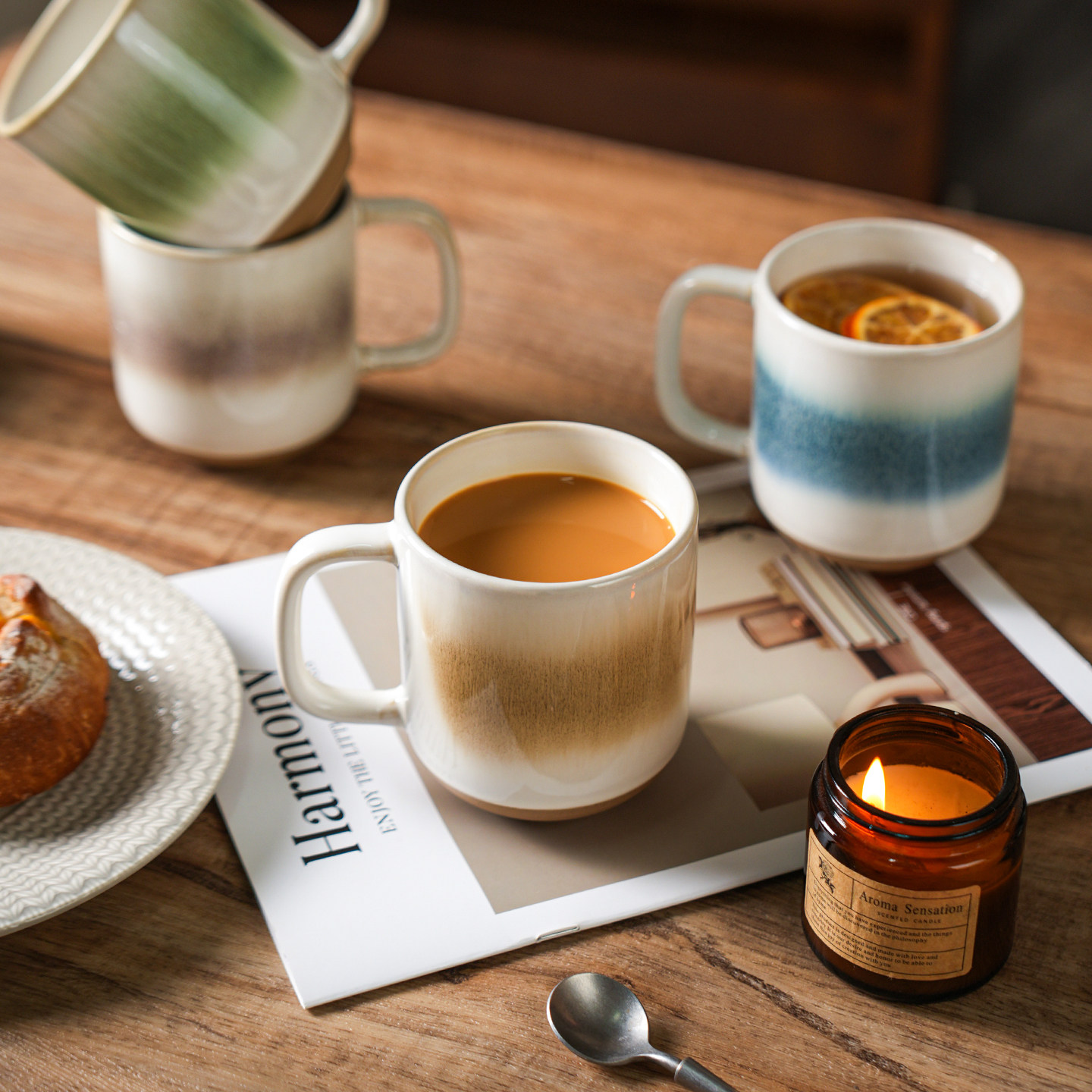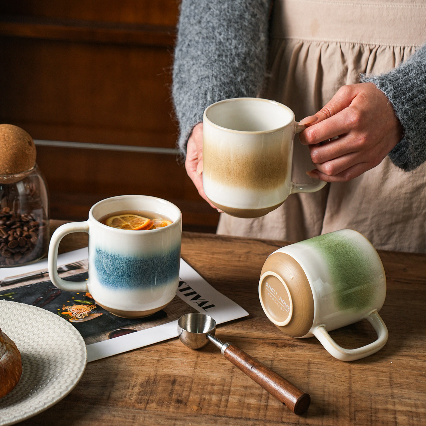 舍里窑变陶瓷男生马克杯轻奢渐变咖啡杯家用办公室喝水杯情侣对杯