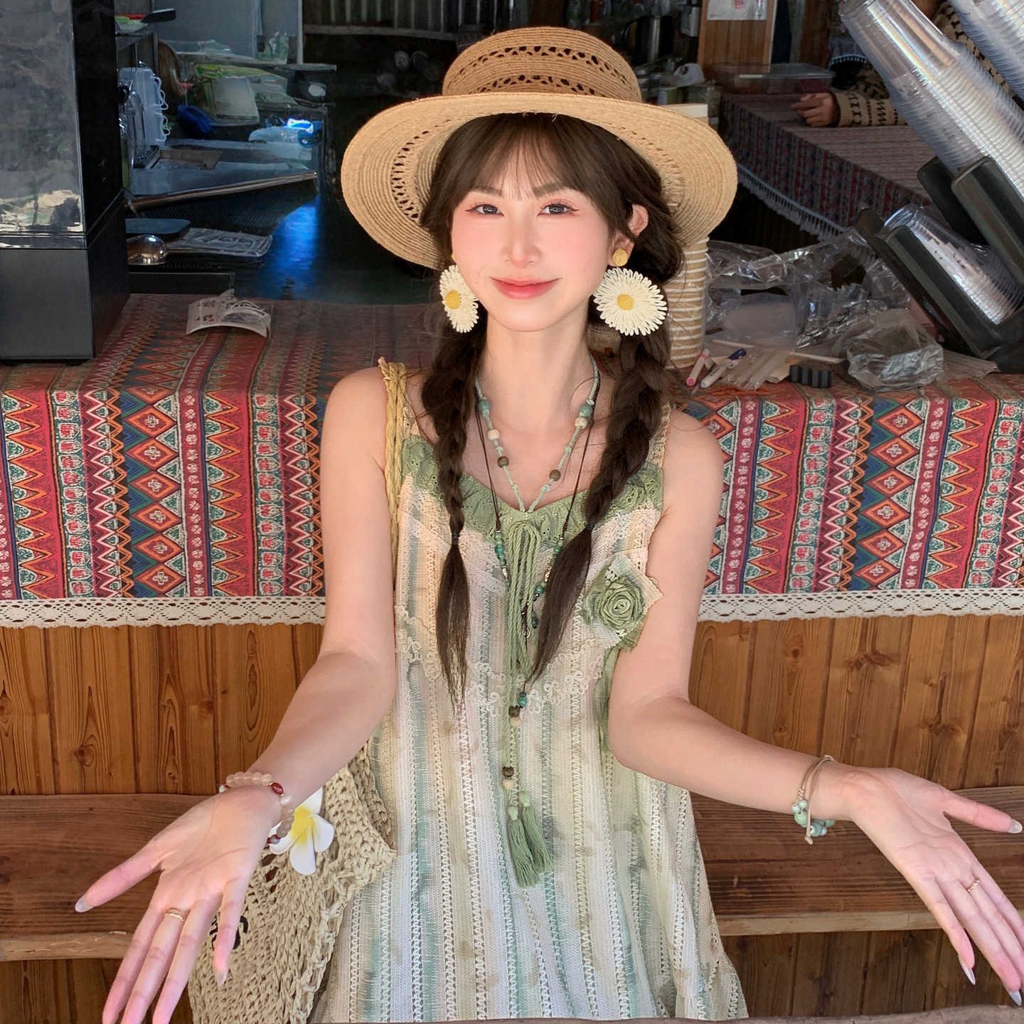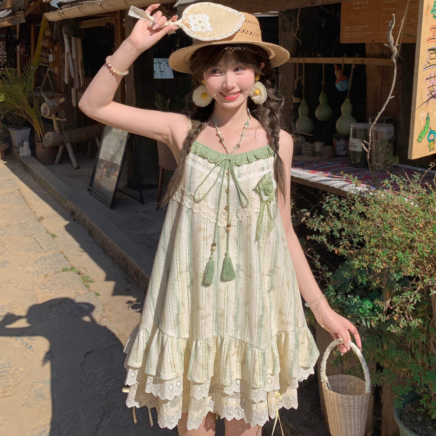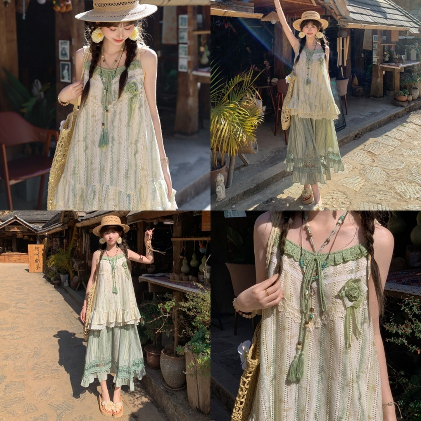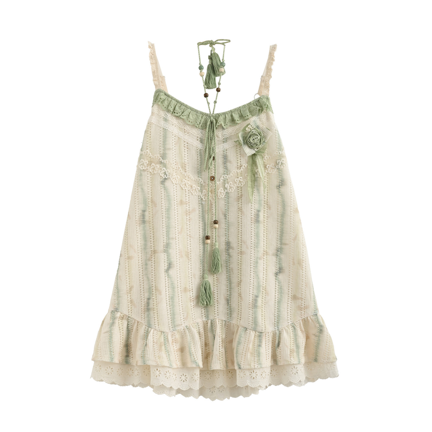 度假风穿搭夏 森女部落原创森系撞色蕾丝拼接设计感外穿背心女新款由