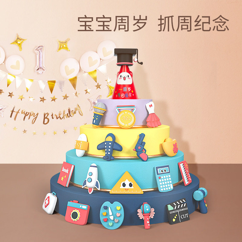 男女宝现代抓阄道具小孩牙胶玩具W生日布置礼 抓周用品一周岁套装