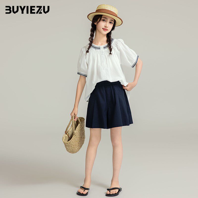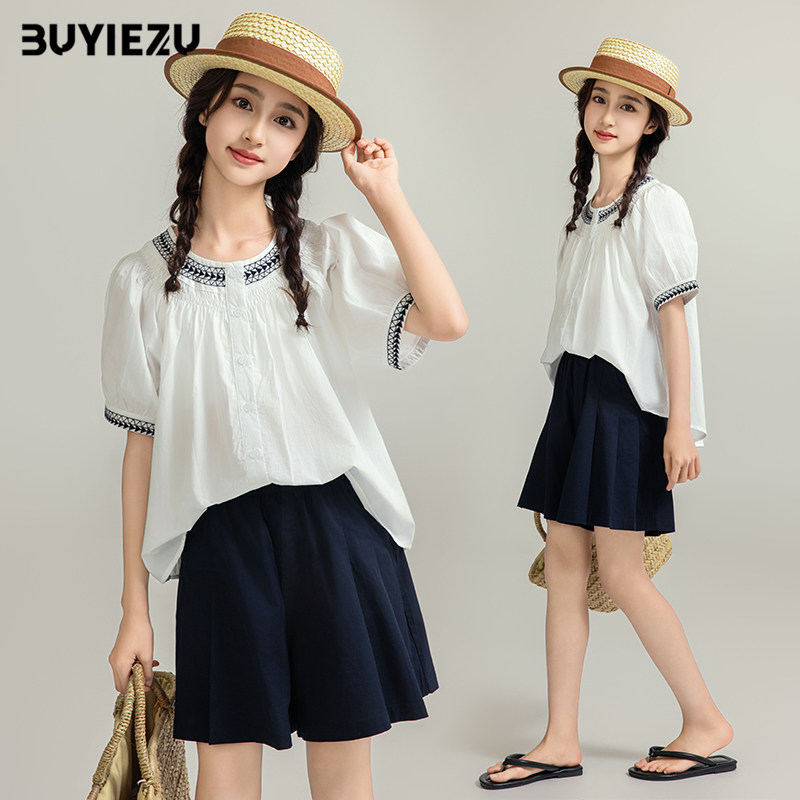 女大童套装 2024新款 初中生夏季 女孩女童洋气时髦田园风两件套 夏装