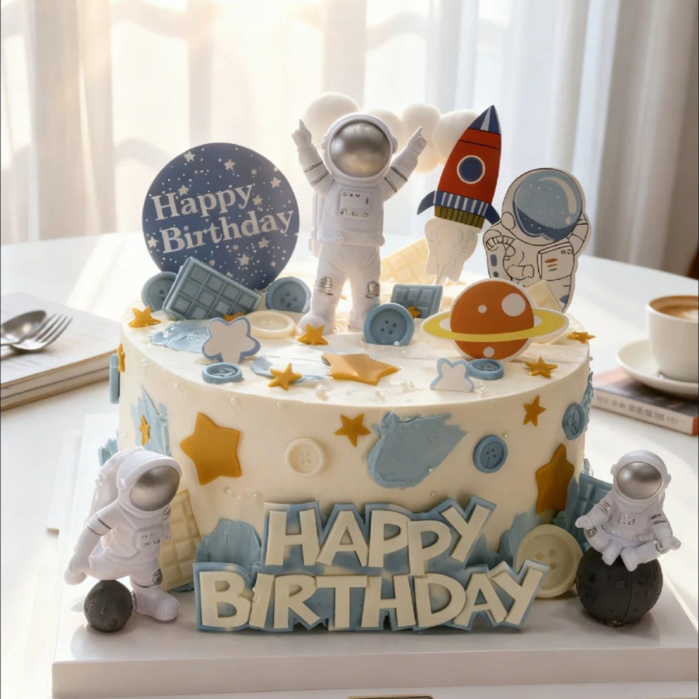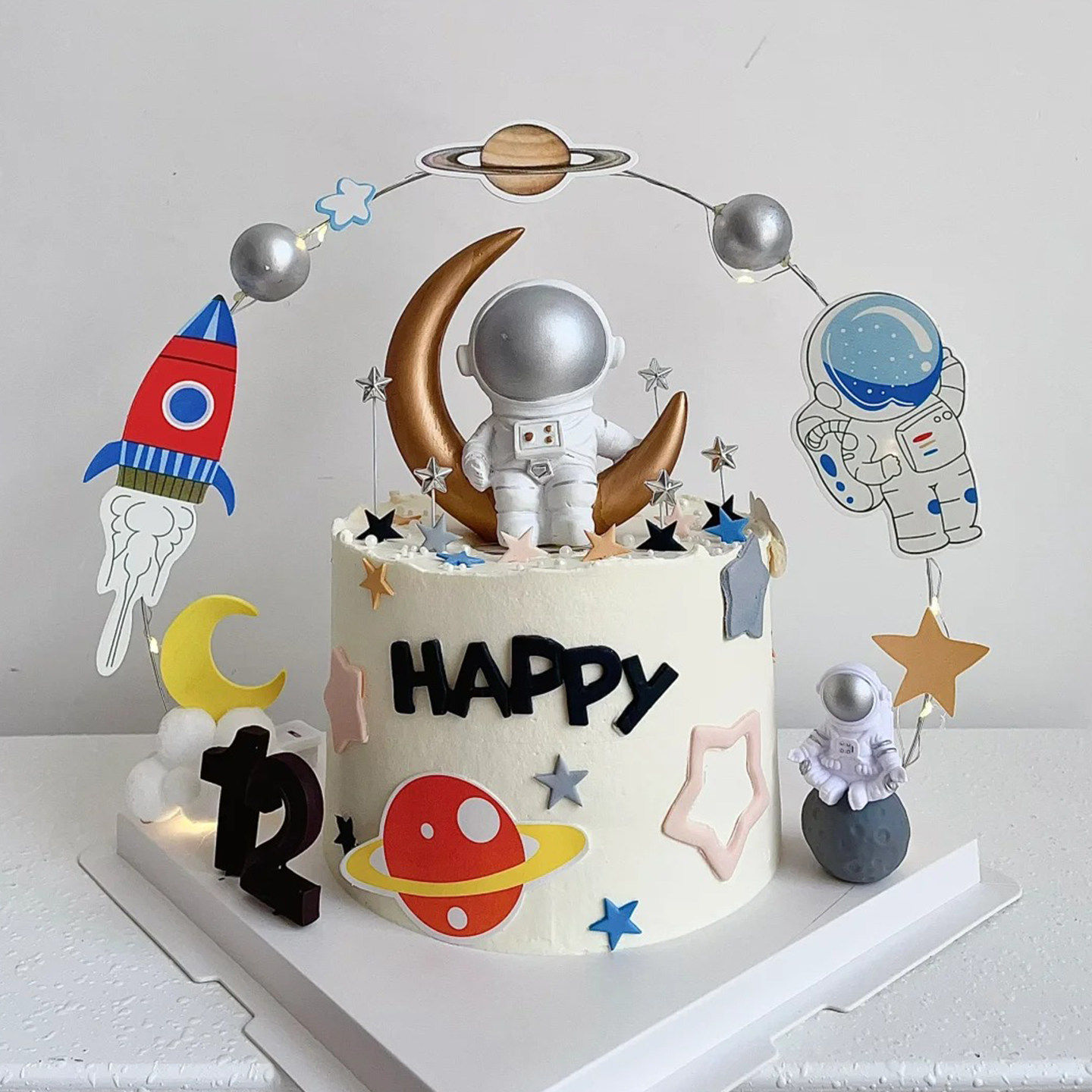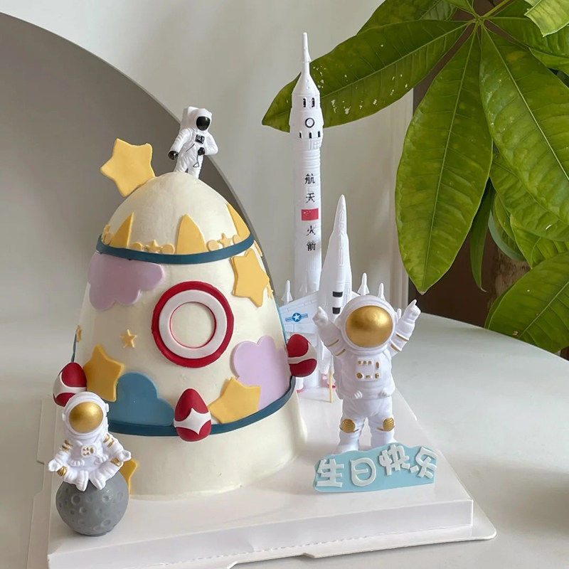 饰插件太空人火箭航天飞机摆件宇宙星球烘焙插牌 宇航员生日蛋糕装
