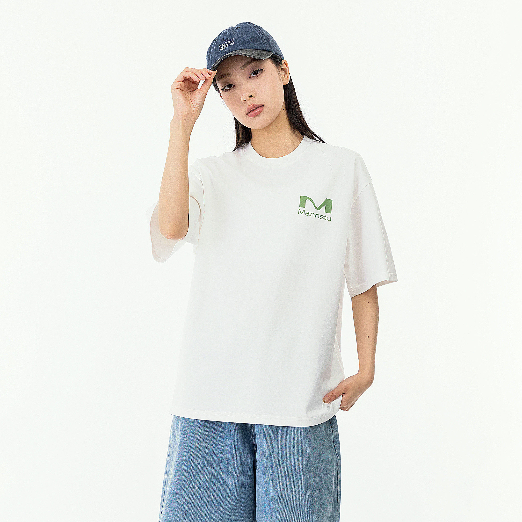 LA短袖 宽松百搭印花上衣白色11 T恤男女情侣落肩袖