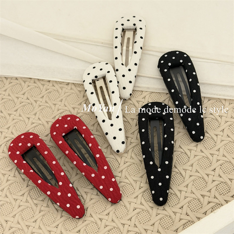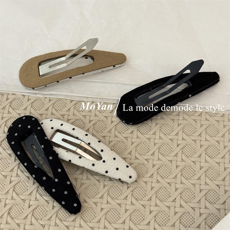 高品质布艺发夹简约黑白波点发卡复古水滴BB夹侧边边夹刘海夹 韩版由