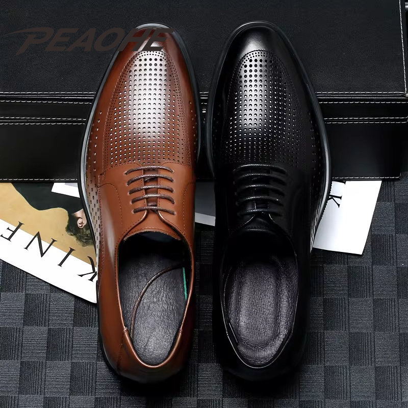2026新款 皮鞋 夏季 商务正装 真皮休闲鞋 男士 男款 透气软底内增高大码