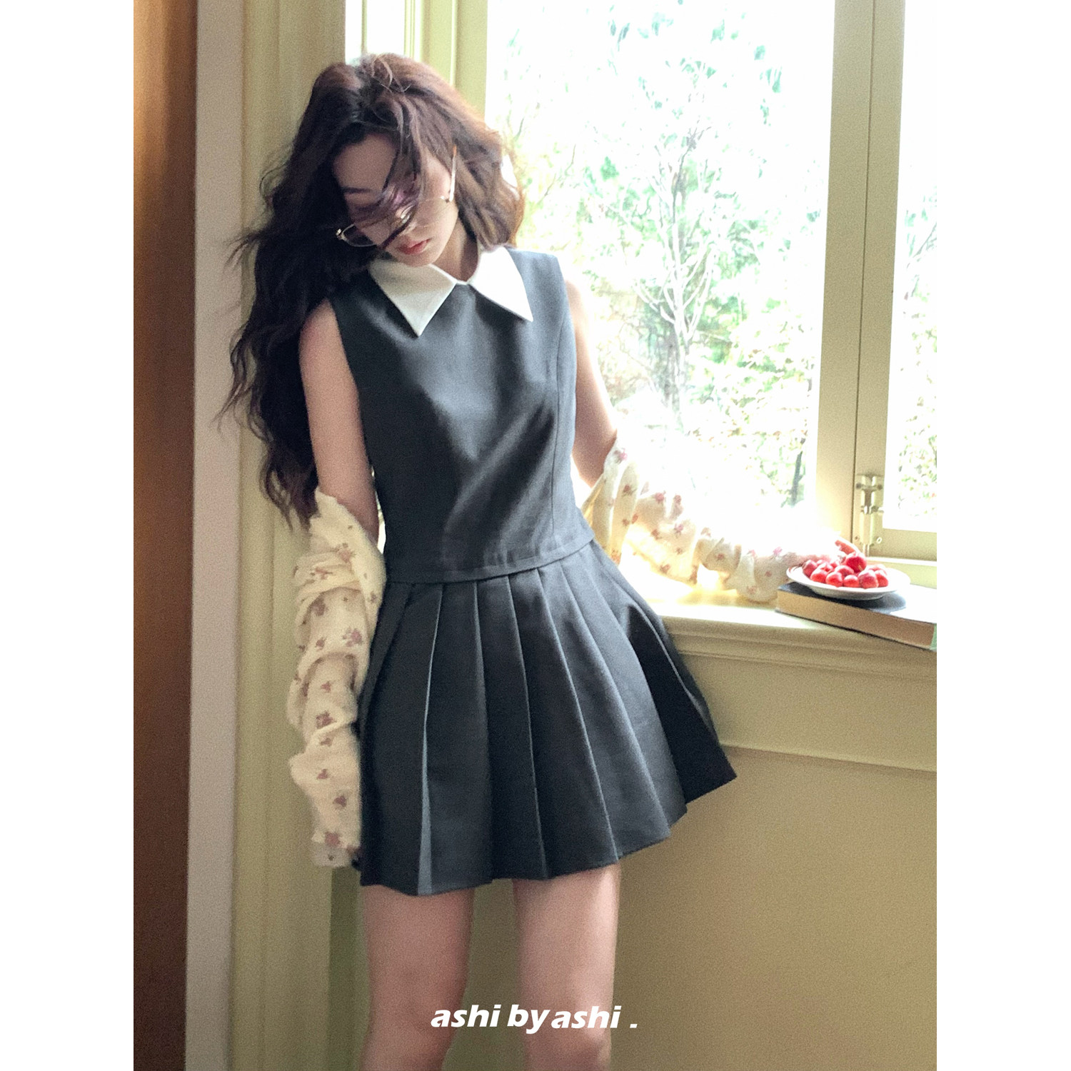 衬衫 领假两件背心百褶裙连衣裙 海德公园 21点前七折 07新品由