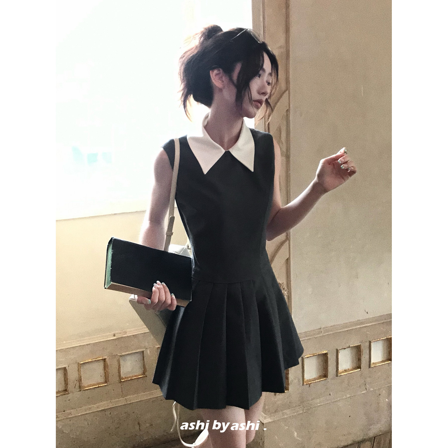 衬衫 领假两件背心百褶裙连衣裙 海德公园 21点前七折 07新品