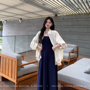 alex 海边度假收腰长裙子内搭 stevens宽肩带吊带连衣裙女春秋夏季由