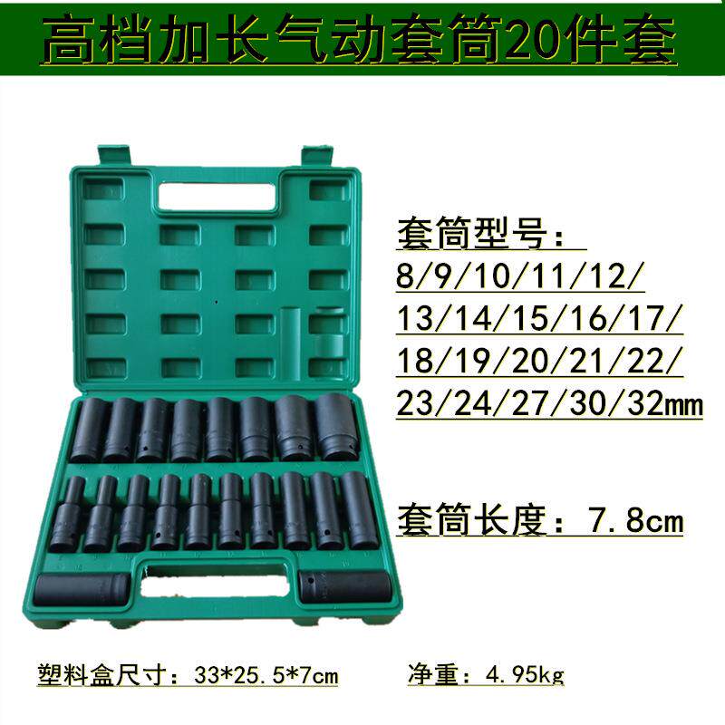 合组 汽车风炮筒20件套套加长气动KWM套筒小风炮套汽车维修筒套装