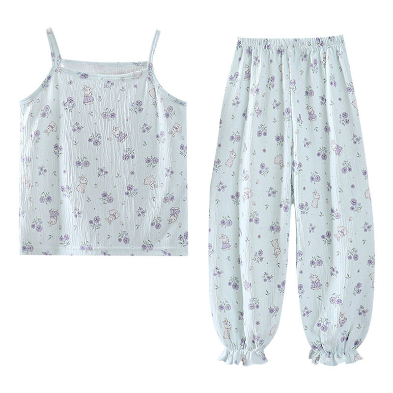 薄款 透气可爱宝宝家居服洋气宽松两件套 清新碎花吊带套装 女童夏季由