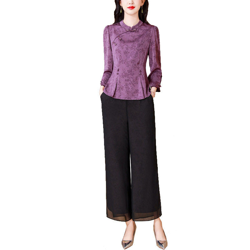 国风上衣时尚 新中式 套装 妈妈春装 早秋外套马甲 三件套中老年女装