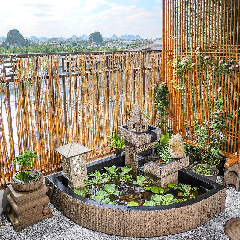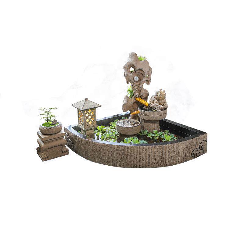 庭中式 阳台鱼池水景造景假山喷泉花园盆景EJT流 水院水池饰景观装由