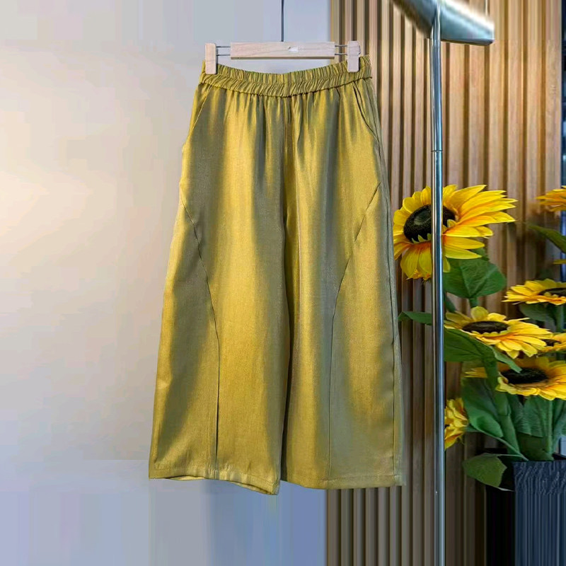 加大码 盘扣袖 口花纹上衣胖妹妹斜压线宽松百搭松紧腰阔腿裤 子 女装