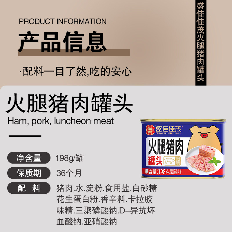 淘宝网为您提供商品盛佳佳茂午餐肉罐头三明治专用即食火腿午餐肉泡面火锅肉罐头早餐的详细介绍,