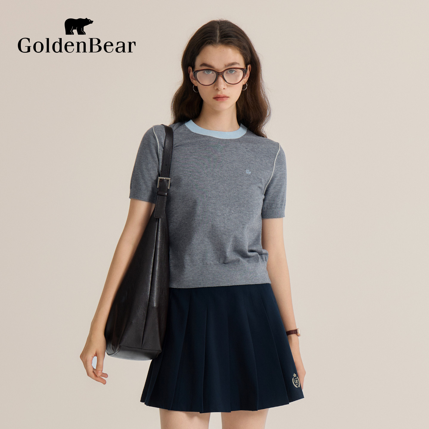 针织衫 GOLDEN 女士撞色拼接短袖 春季 BEAR 金熊由