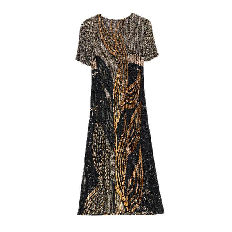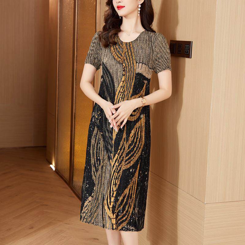为您提供商品中长裙短袖 实拍欧美皱褶时尚 印花2024夏季 新款 连衣裙 大码的详细介绍,