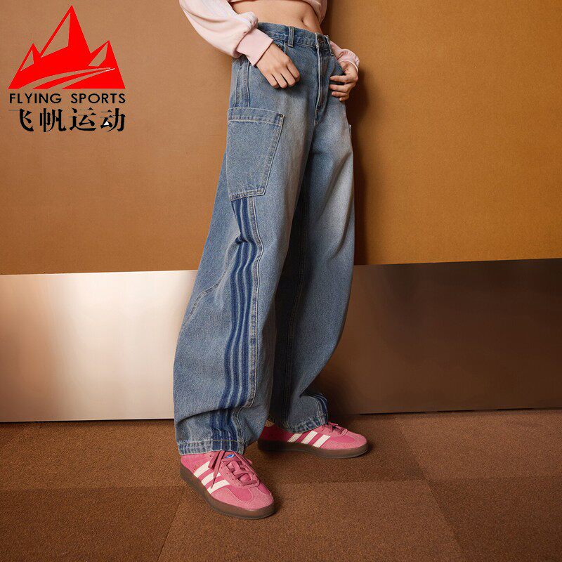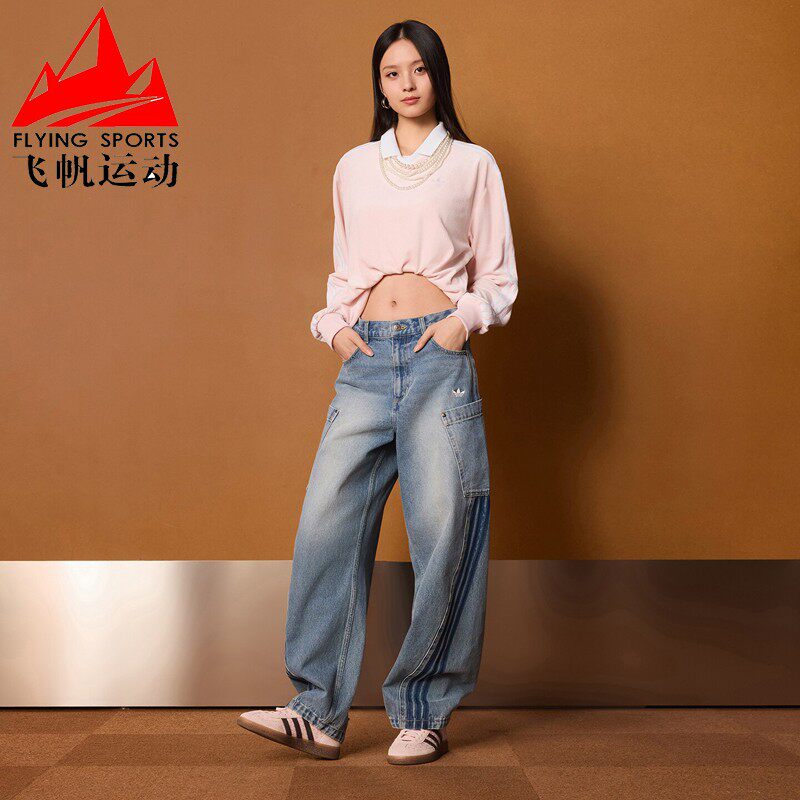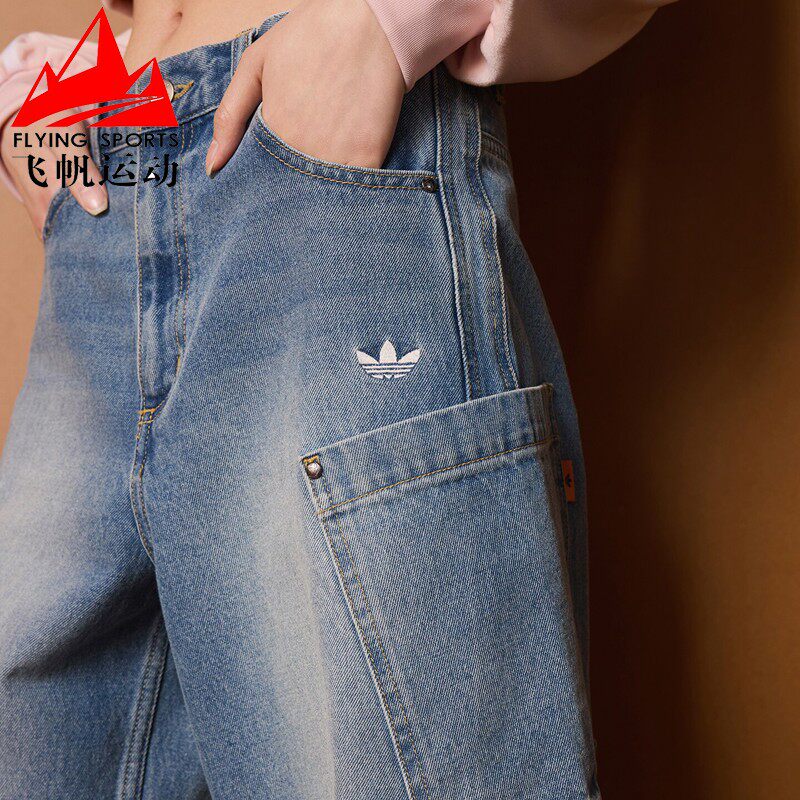 宋雨琦同款 女装 春季 adidas阿迪达斯三叶草 休闲阔腿直筒牛仔运动裤