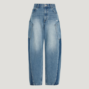 美式 女春夏2026新款 高腰垂感小个子宽松复古运动阔腿裤 直筒牛仔裤