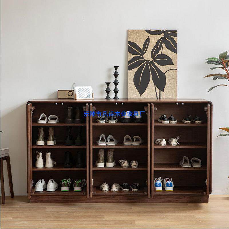 柜家用门口简约樱桃木玄关客厅收纳储物柜 北欧黑胡桃实木鞋由