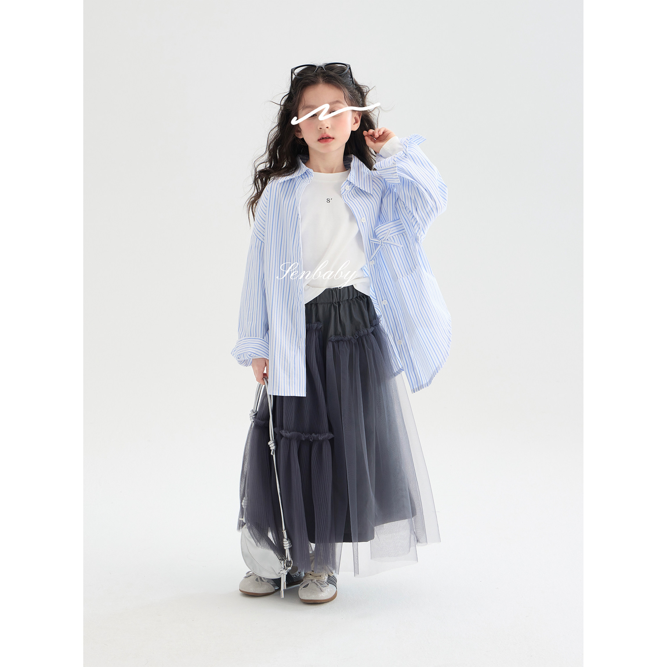 2026春款 儿童半身裙两件套 套装 女童条纹衬衫 现货 senbaby童装由