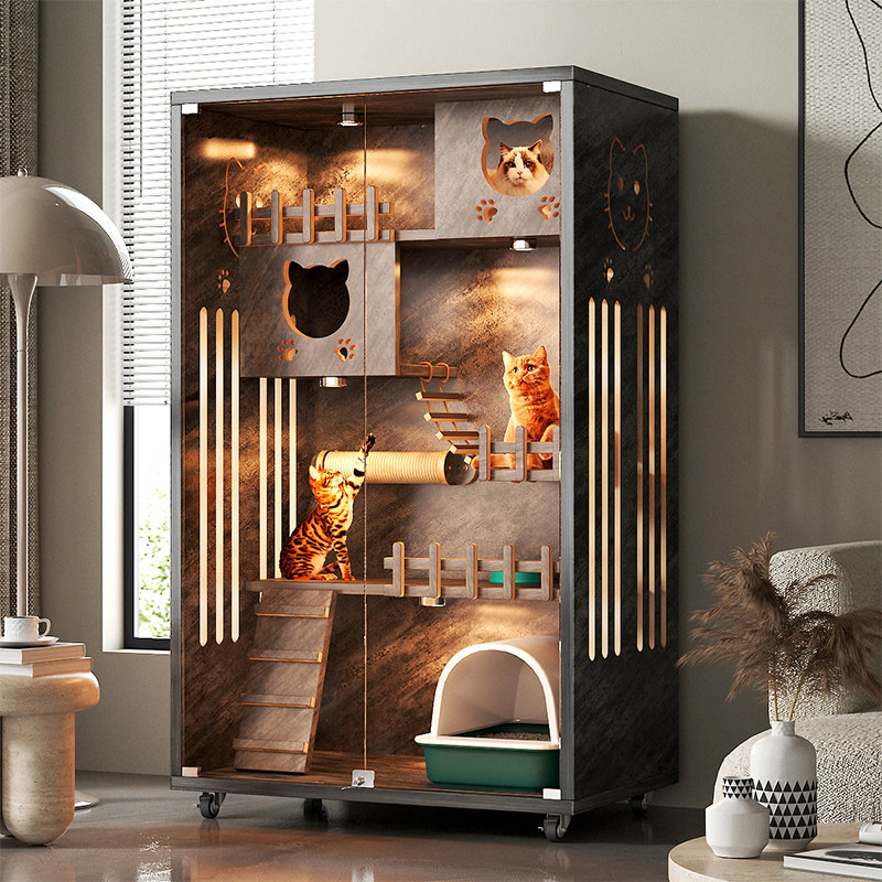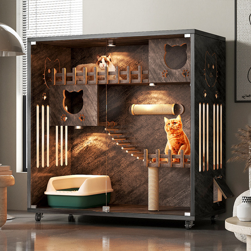 猫笼子猫别墅木质玻璃门多层简约猫房子豪华猫爬架可移动室内猫屋