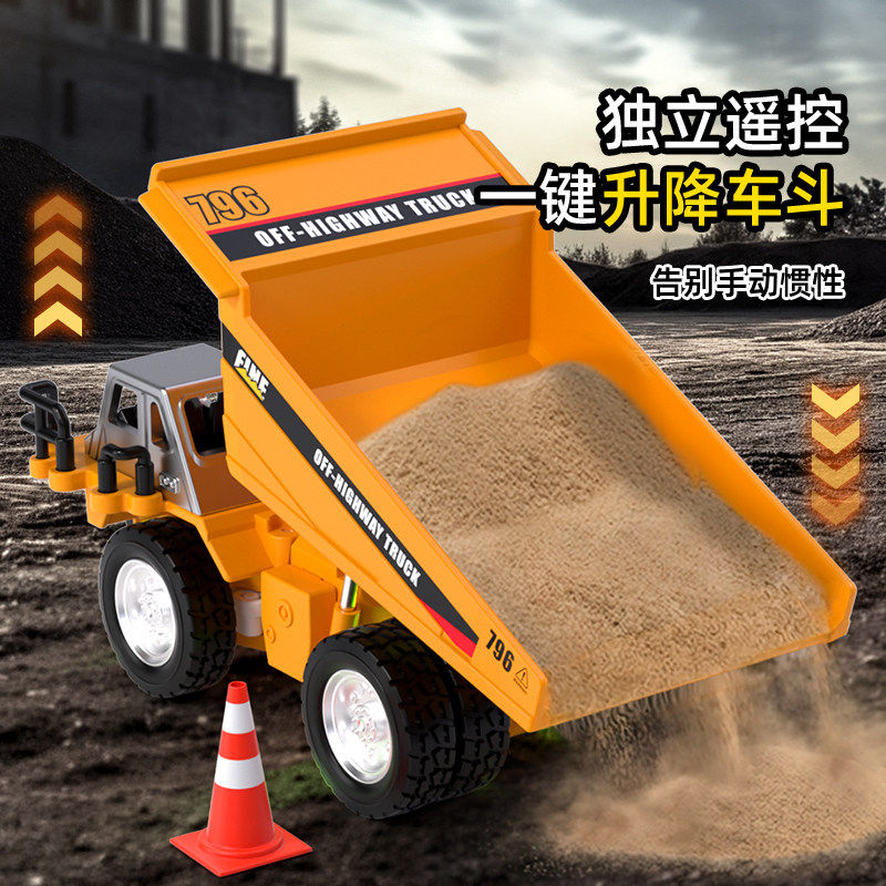 64工程车 迷你合金遥控自卸车桌面翻斗车电动小汽车儿童玩具男孩1