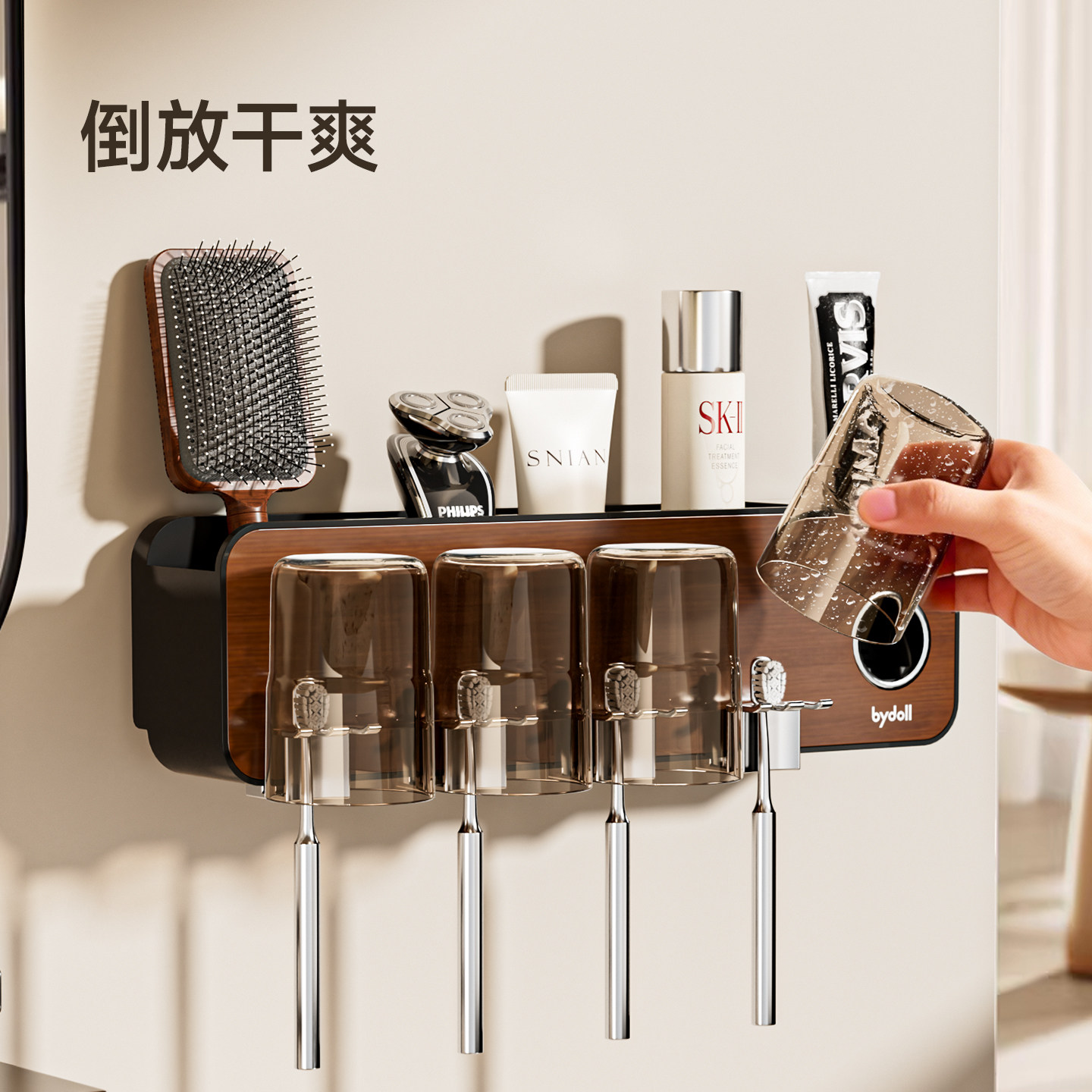 免打孔洗漱台漱口杯刷牙杯家庭电动牙膏牙刷架子 牙刷置物架壁挂式由