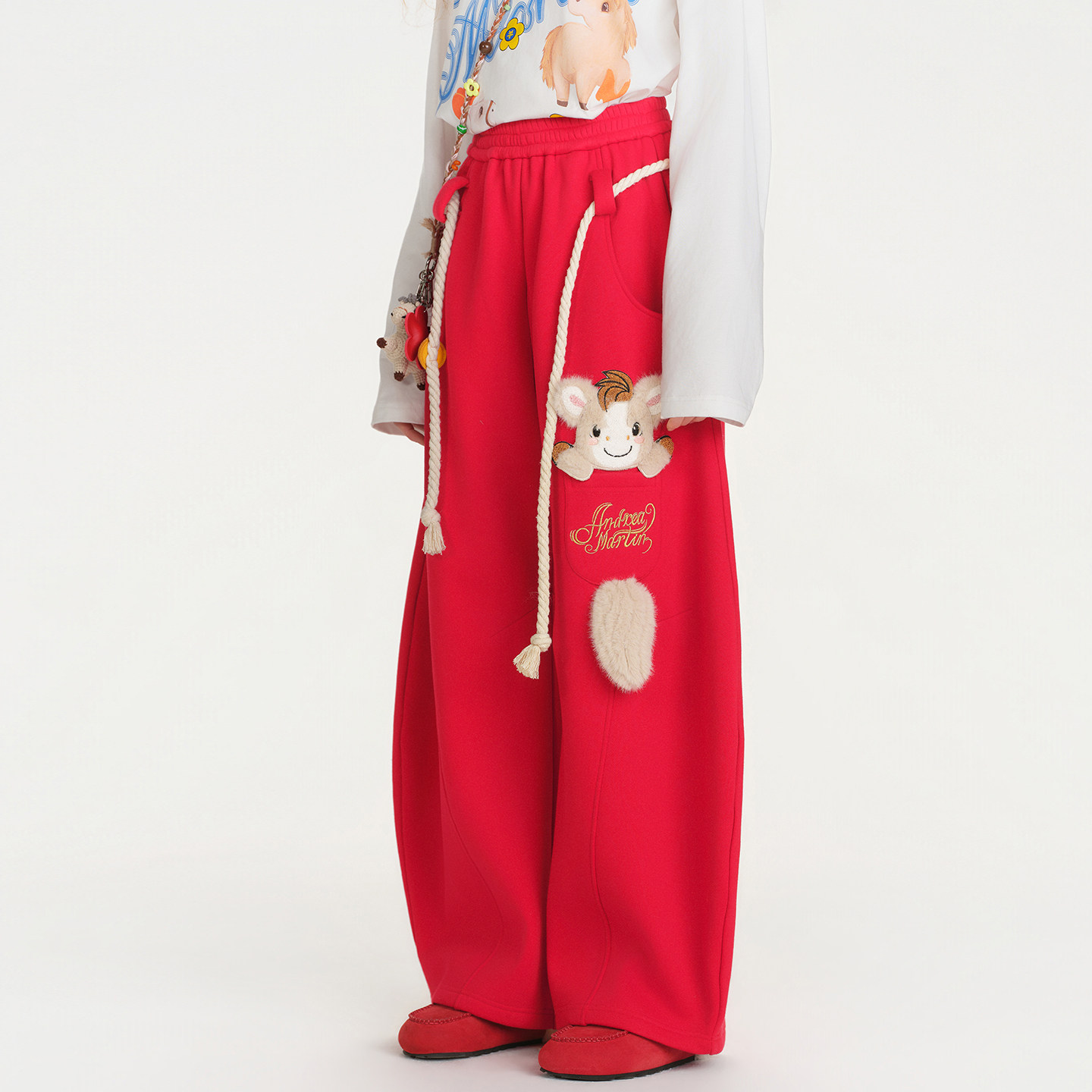 红色阔腿裤 ANDREA 设计感 女宽松弯刀裤 休闲裤 MARTIN2026春季 新款