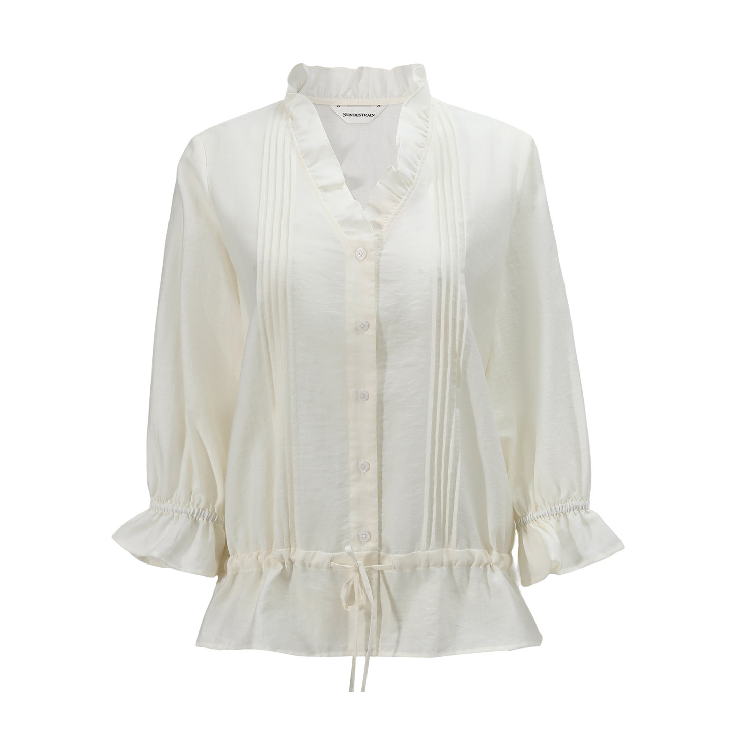 NON 荷叶边V领七分袖 衬衫 女通勤微透塔克褶抽绳衬衣 RESTRAIN法式