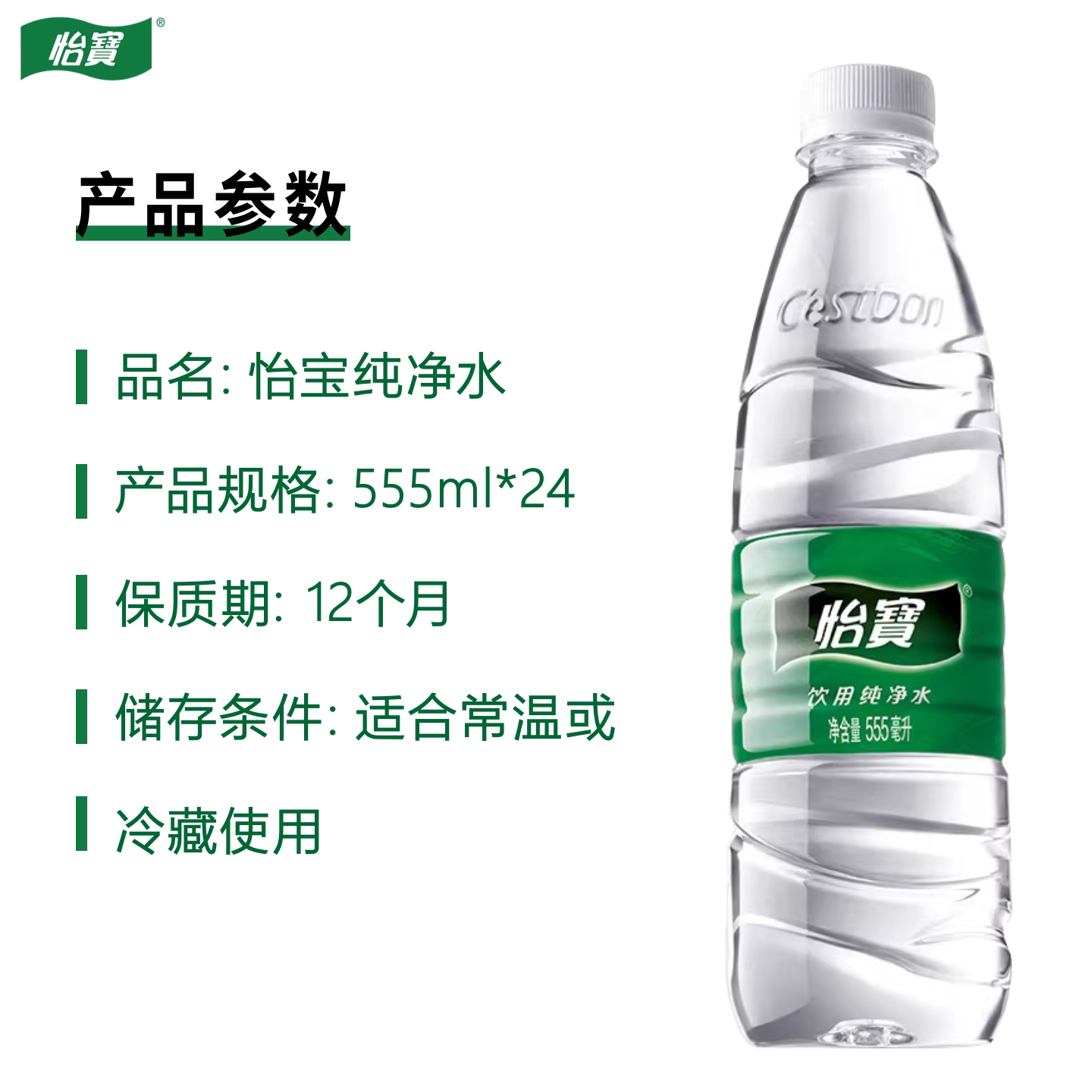 为您提供商品饮用水办公室家庭装 饮用水 24瓶整箱大瓶装 怡宝饮用纯净水555ml的详细介绍,