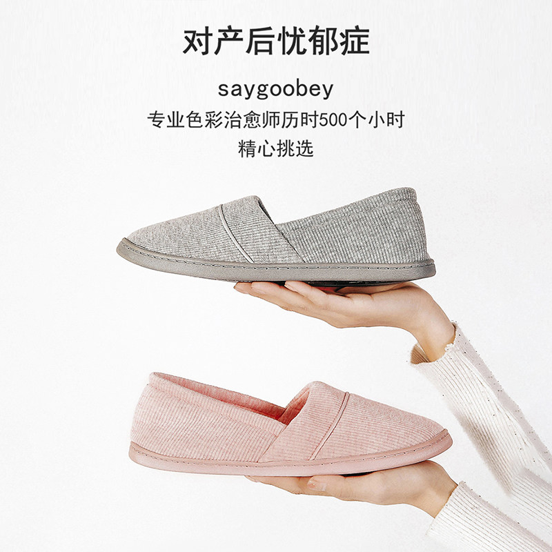 女式 中老年春秋季 居家用软底包跟棉拖鞋 室内静音木地板大码 月子鞋由