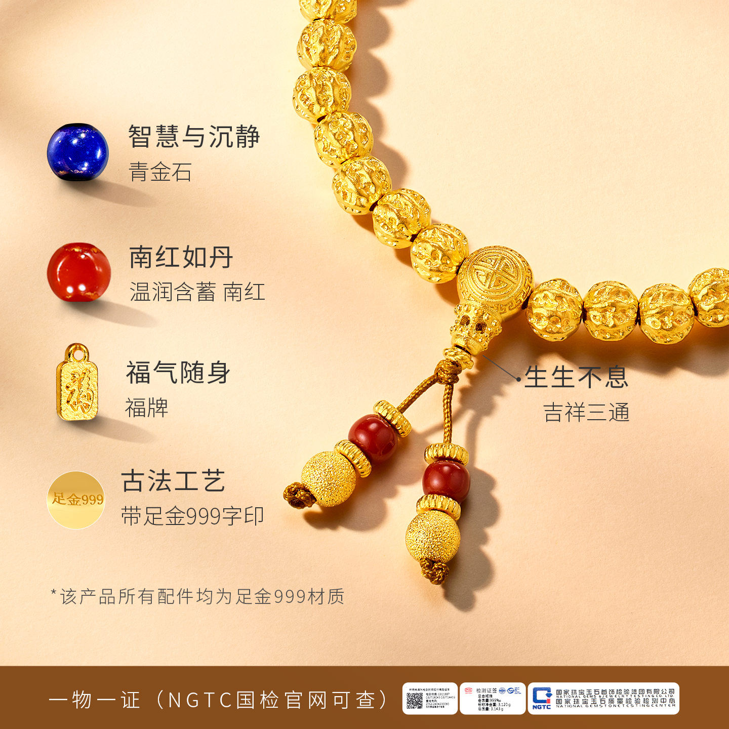 为您提供商品金至尊福满核桃珠黄金手链足金999手链古法福牌黄金手串生日礼物的详细介绍,