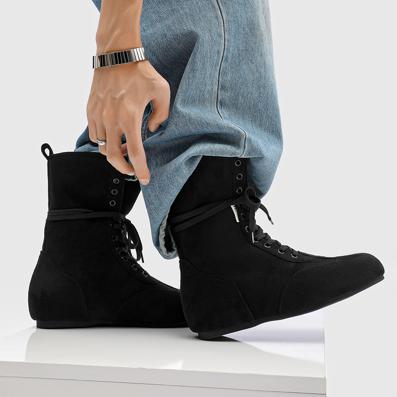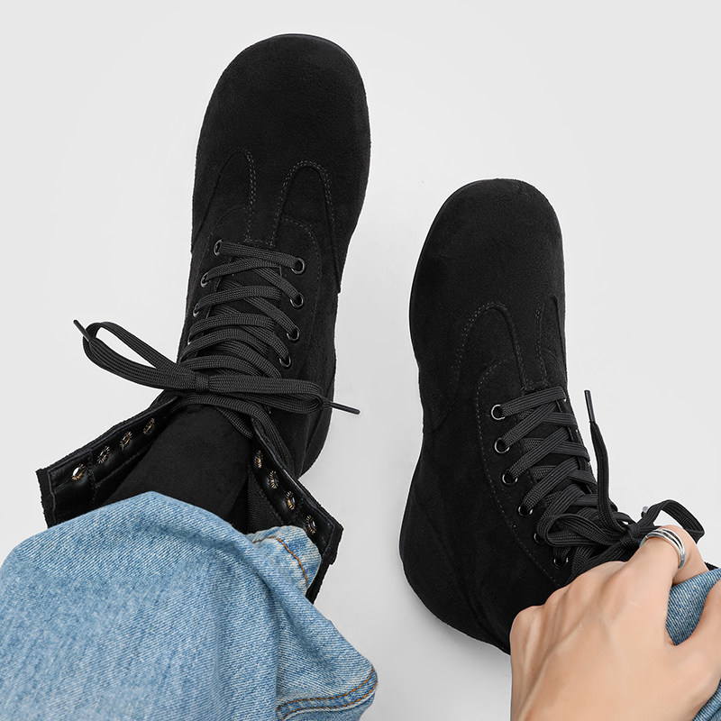 2025新款 中帮机车靴子男生增高皮靴 英伦风黑色高帮皮鞋 马丁靴男款