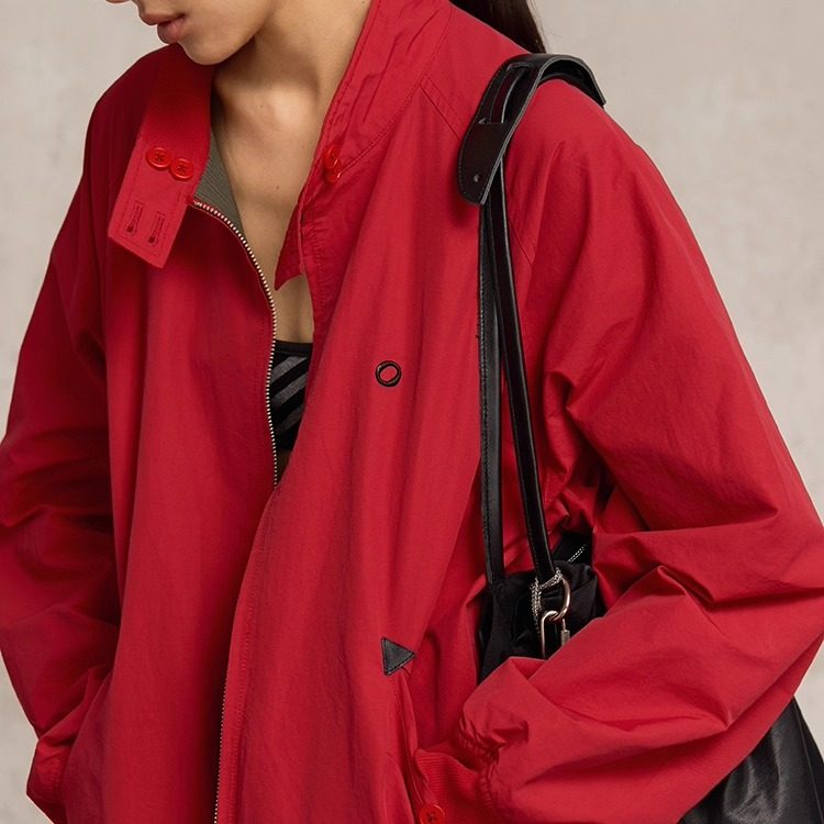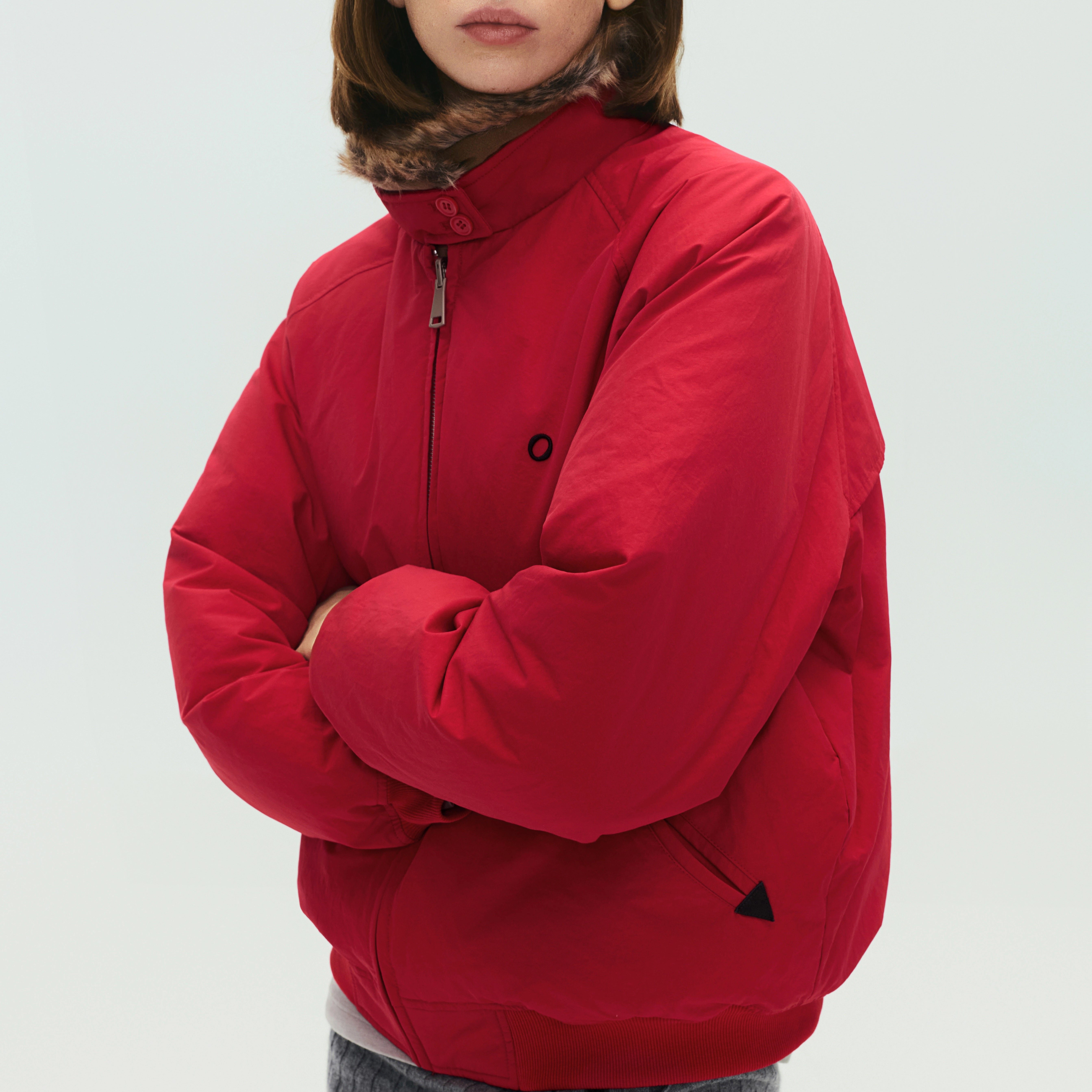 SoloForTwo 秋冬羽绒宽松短外套 中古红色夹克立领正反两穿飞行服