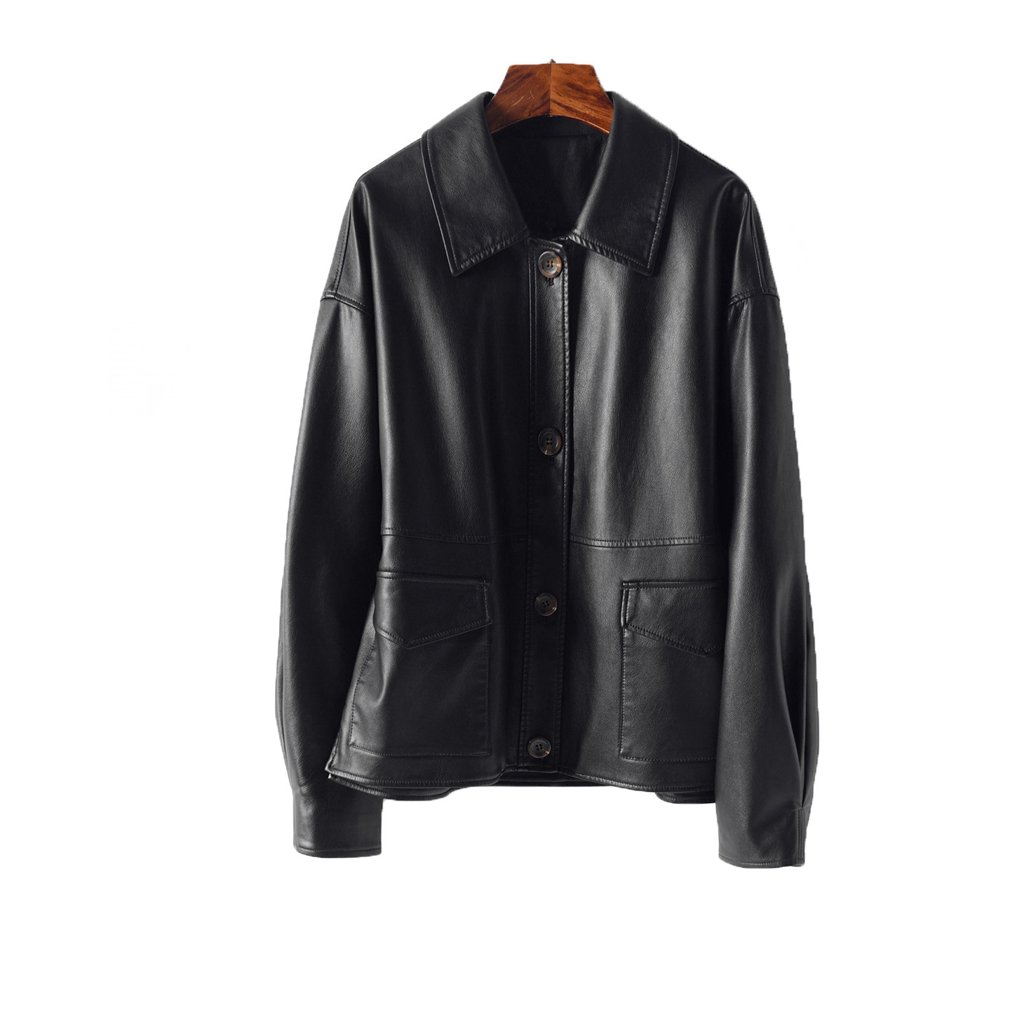 为您提供商品海宁皮衣女常规翻领黑色宽松加大码 春秋绵羊皮外套 皮夹克2026新款的详细介绍,