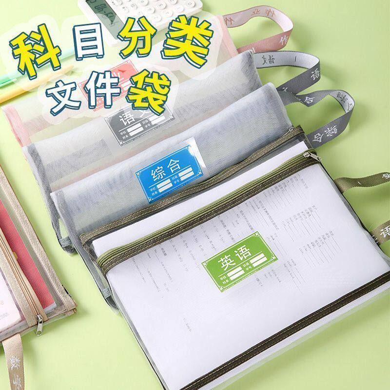 学科文件袋双层大容量高中生A4试卷资料袋透明网纱分科书袋作业袋收纳袋书本分类 科目分类袋初中生专用拉链式