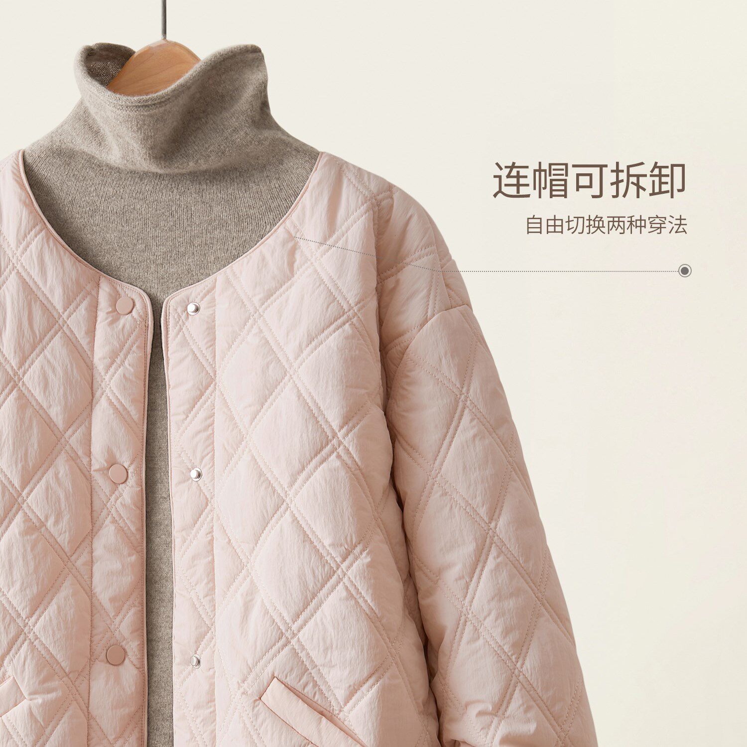 羽绒棉服女短款 新款 连帽中年妈妈装 轻薄棉衣夹棉外套棉袄 秋冬季