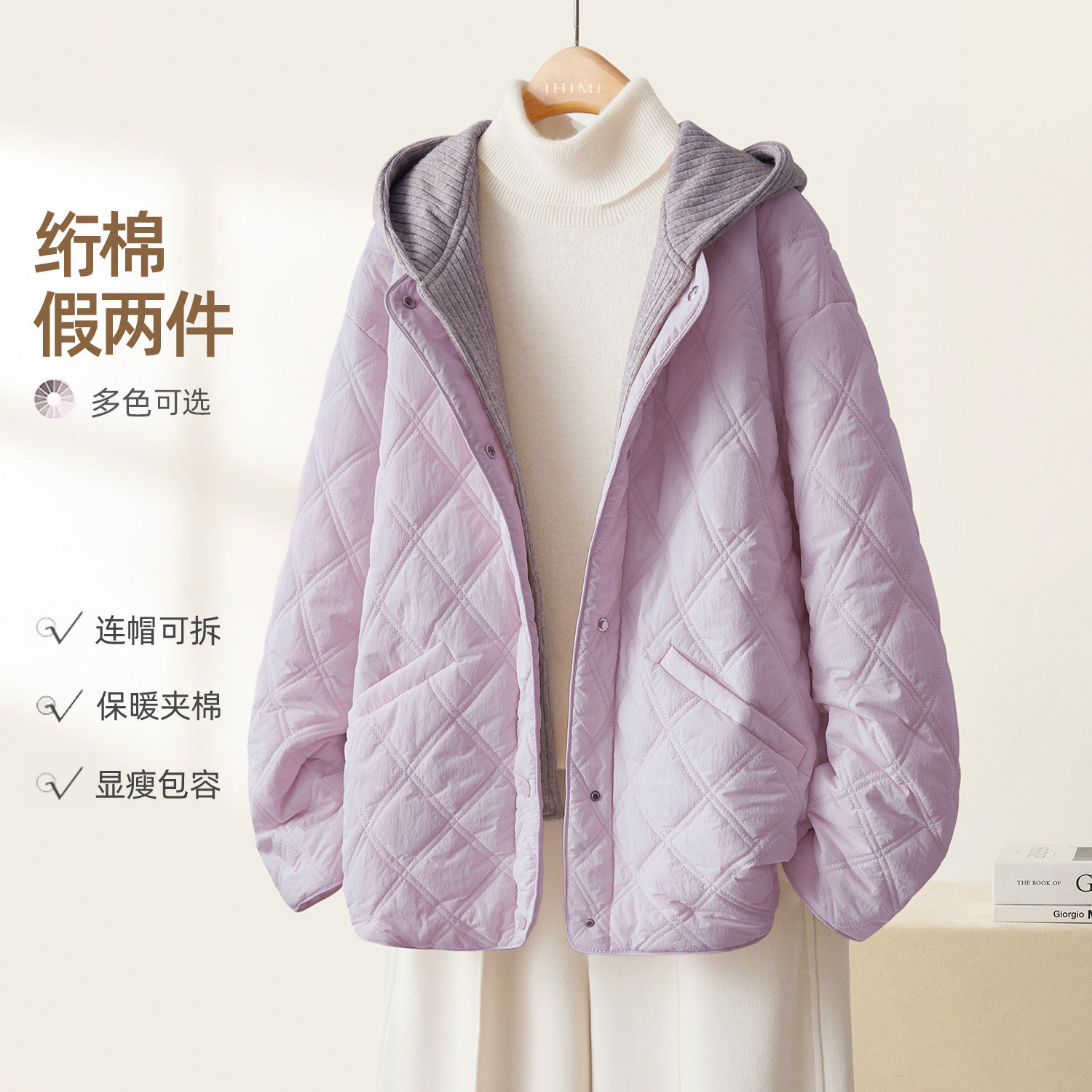 外套时髦百搭显瘦 IHIMI海谧可脱卸连帽两穿棉衣女冬宽松棉服短款由