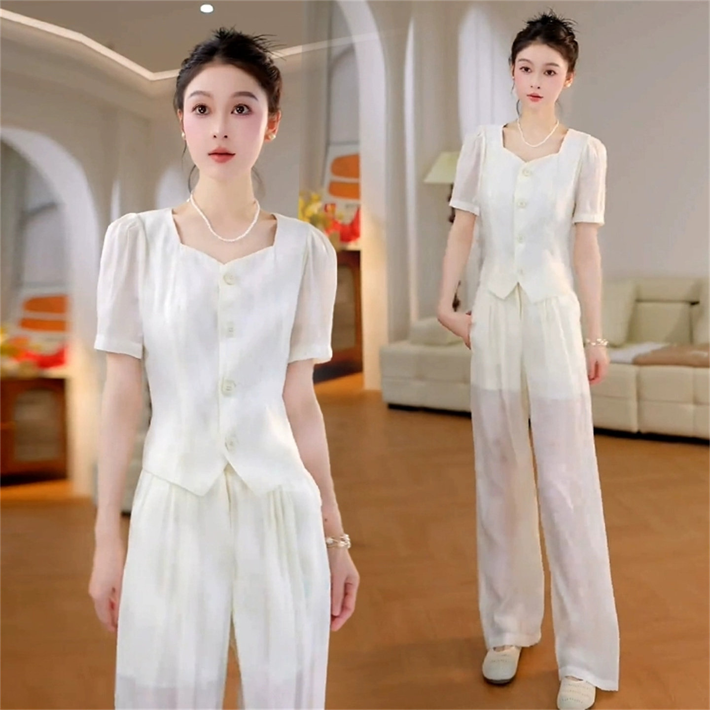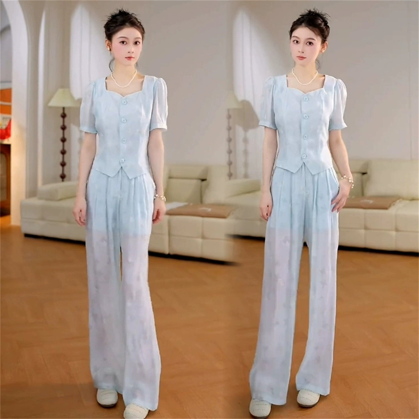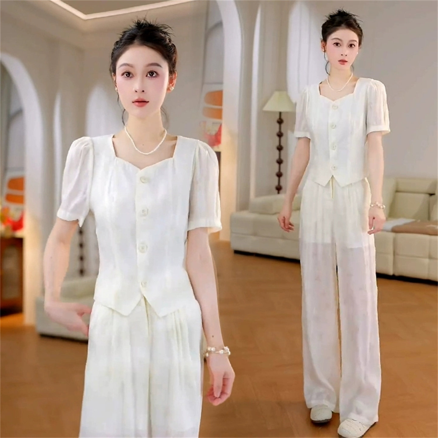 新款 女士2025夏季 套装 两件套潮 高级感洋气减龄短袖 阔腿裤 爆款 时尚由