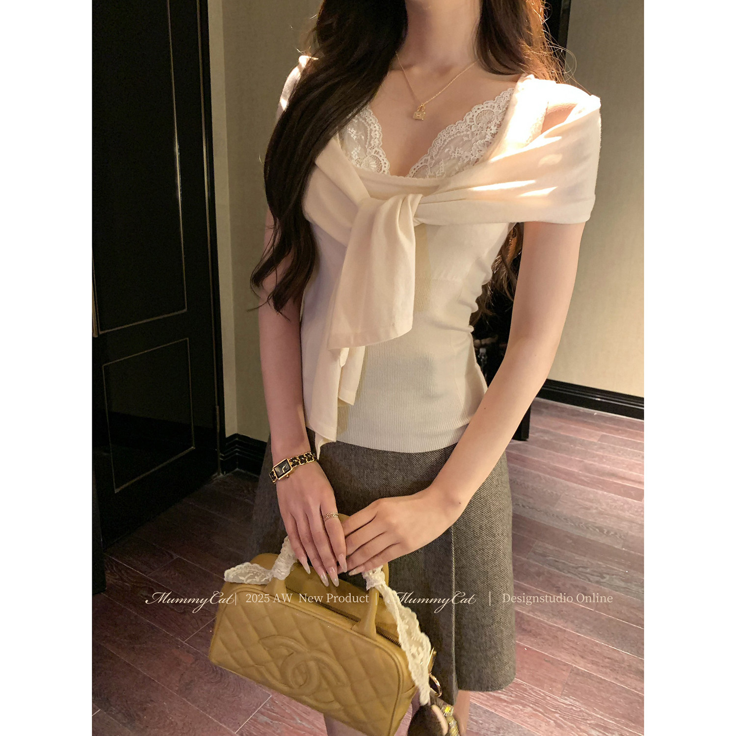 匿名温柔 Mummy Cat 下蛋喵 30绵羊毛披肩绑带针织上衣 新品
